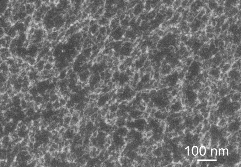ナノスケールの網目状に合成された酸化チタンの電子顕微鏡像